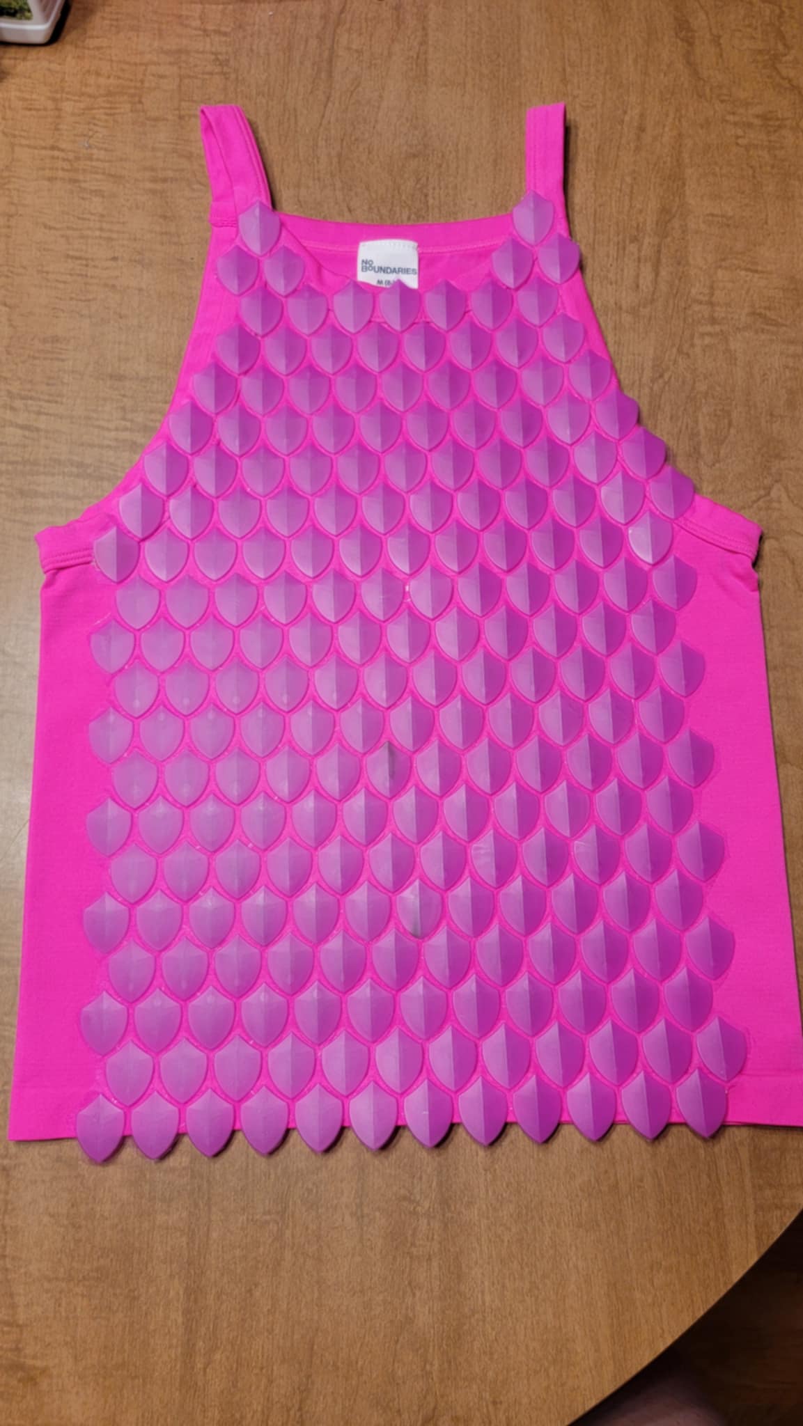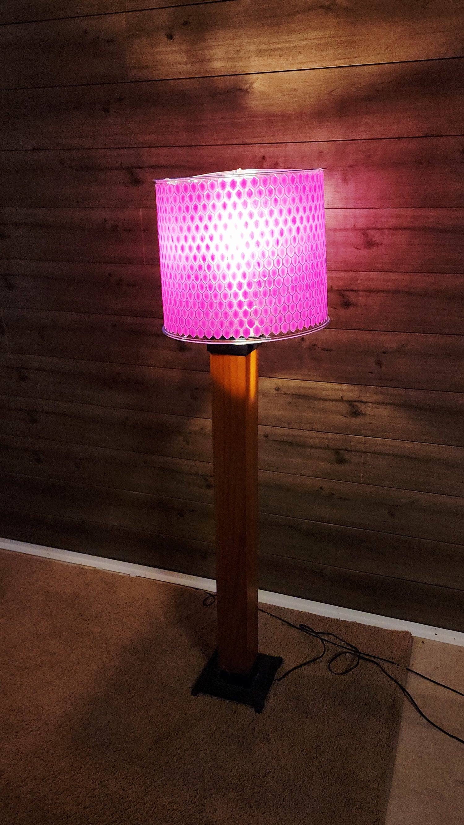 This was a lamp that needed a new shade, the Pink Scales were used to add a fun pop of color.